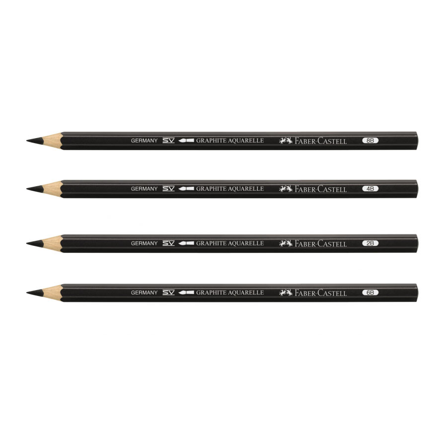 Le crayon graphite aquarellable Faber-Castell convient parfaitement pour la réalisation desquisses de dessins aquarelles et pour les dessins entièrement au graphite, aquarellé. Ce crayon graphite pour artistes, doté dune mine de 3,3 mm très résistante, est disponible dans cinq degrés de duretés HB, 2B, 4B, 6B et 8B.